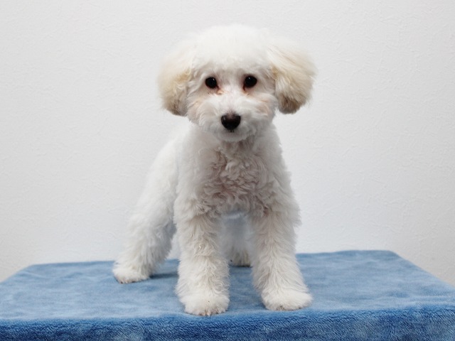◎パパ犬は数多くのチャンピオン犬を作出してる世界的有名犬舎のスマッシュ系 父 ホワイト JKCチャンピオン タイニーサイズ 母 シルバー アメリカチャンピオン直娘 タイニーサイズ 両親ともにチャンピオンの血筋があり、良血統です。 この子は成犬時、タイニー?トイサイズに仕上がるでしょう。 チャンピオンの子だけあって、スタンダードな体系、毛量多めでクオリティが高いです。 この子と同等の血統の子がペットショップでは80万円以上で販売されていますので、かなりのお買い得価格です!! 性格は気立てが良く、陽気な男の子ですが、あまり吠えない子です。 サークル内でのトイレはほぼ出来ています。 既に2回目の混合ワクチンを接種済みですので、お散歩や他のワンコ達と遊ぶことが出来ます。 ある程度月齢が経っていますので、共働き、一人暮らし、シニア世代の方にはおすすめです。 子犬には業界最長の1年間の生命補償つきでアフター万全です。 飼育についてもいつでもご相談ください!! |