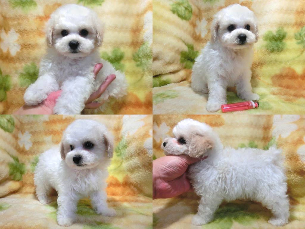 ☆タイニー予想☆お目々クリクリ!! お鼻も短めとても可愛い男の仔♪ スタイル抜群毛質も良く巻きも良好 色素バッチリ真黒なお鼻で安心♪ お耳だけ少しレモン色ですが身体はホワイト とっても綺麗な毛色ですよ!! 生後50日の体重は約950g、成犬時予想体重は3kg位だと思います☆ 身体のバランスがとても良くしっかりした硬い胴で骨量の多い丈夫な仔 現状噛合せや骨格・関節形成など問題無く欠点の心配はありません!! 離乳も済み食欲も旺盛でドライのままカリカリ!!いつでもお引き渡しOK♪ 【その他諸費用】 8種ワクチン接種費用:6千円(税込)【画像入証明書付・健康診断込】 ※お迎えの場合で【生体代金】+【ワクチン接種費用】のみになります。 ●血統書登録団体:JKC(到着次第郵送※3ヵ月以上要する事もあります) 素敵なご家族様からのお問い合わせ、お迎えをお待ちしております^^ ※送犬が必要な場合は、総重量・距離に応じた送料を申し受けます。 |