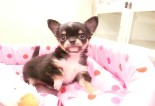 ロングコートチワワのブラックタンホワイトの女の子♪